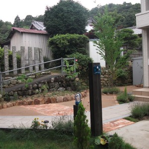 A様邸(愛媛県西条市) 投稿者: D1-fujii 2021年11月18日2022年1月31日 ご依頼の内容は草取りを楽にしたい。かつお気に入りの借景の眺めを損なわずおしゃれにしたいというものでした。草花がお好きなご夫婦で施工前からたくさん植えられていました。工事中、大切な植物を丁寧に仮移植し、花壇ができ上がってから土壌改良した花壇に植え付けました。土の部分は真砂土のような舗装材で雑草が生えにくくなりました。アプローチに明るい色のレンガを用い見た目の印象も明るくなりました。