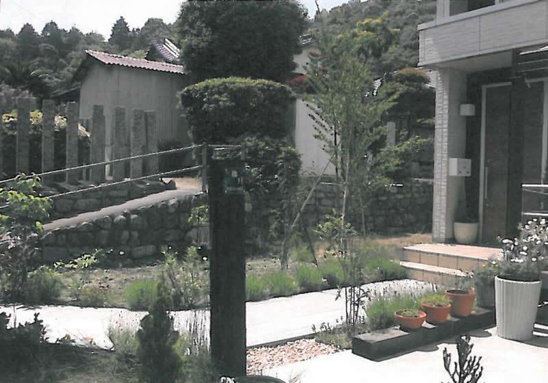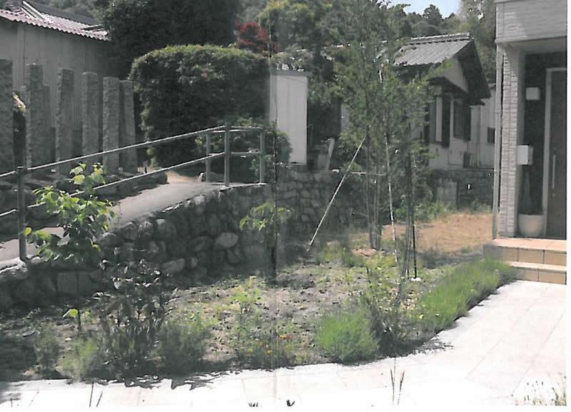 ご依頼の内容は草取りを楽にしたい。かつお気に入りの借景の眺めを損なわずおしゃれにしたいというものでした。